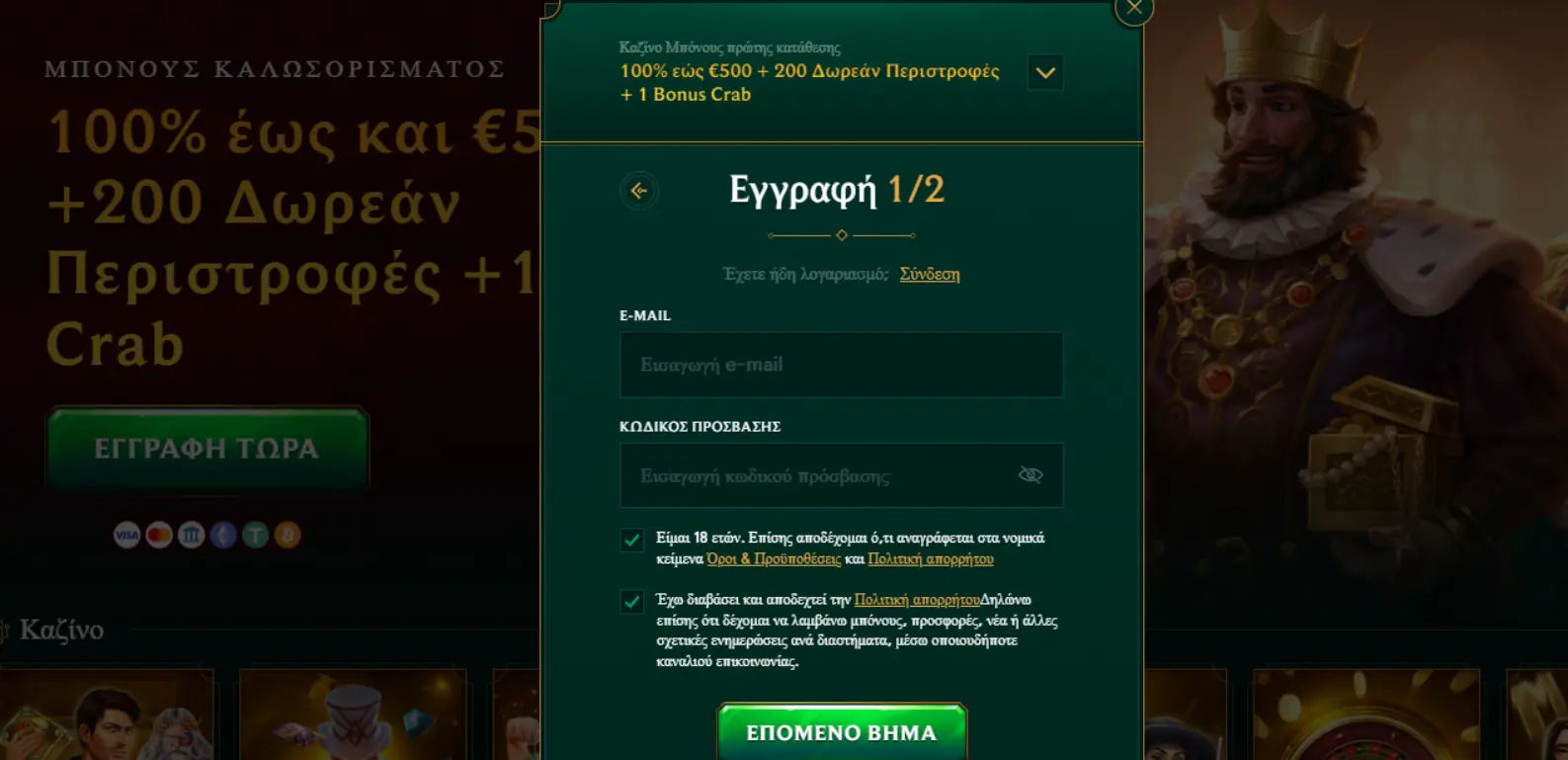 Αφού βρείτε το διαδικτυακό καζίνο που σας εξυπηρετεί, ανοίξτε τη σελίδα του και προχωρήστε σε εγγραφή.